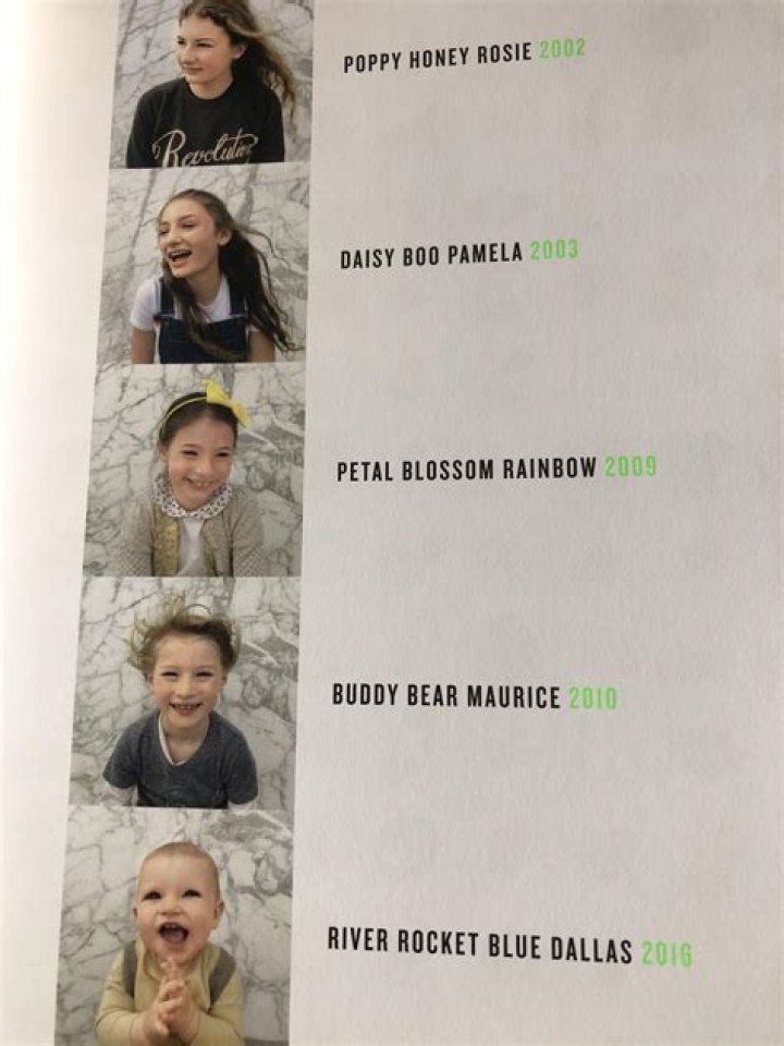 For example, their eldest daughter, Poppy Honey Rosie, was named after the poppies that were blooming in the field where Jamie proposed to Jools. Their second daughter, Daisy Boo Pamela, was named after the daisies that were growing in their garden when she was born. Their third daughter, Petal Blossom Rainbow, was named after the rainbow that appeared on the day she was born. Their son, Buddy Bear Maurice, was named after Jamie's grandfather, Maurice. And their youngest son, River Rocket Blue Dallas, has a name that is inspired by nature and music.