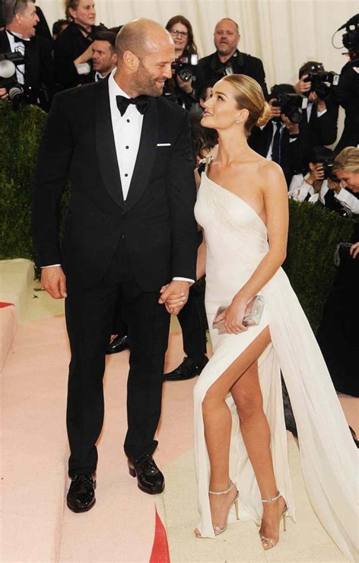 Jason Statham, on the other hand, looked effortlessly stylish in a classic black tuxedo. The tailored fit and sharp lines accentuated his athletic build and exuded an air of timeless sophistication. The tuxedo's simplicity allowed Rosie's gown to take center stage while still maintaining a cohesive and elegant overall look.